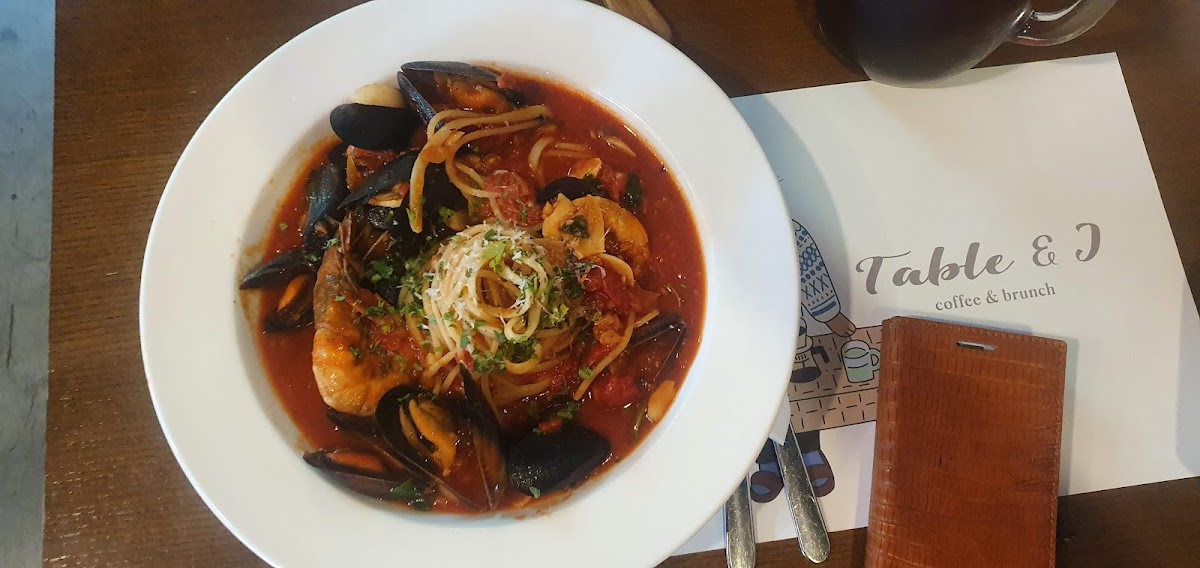Culinary Delights: The menu at Table J features an enticing selection of dishes. Their standout offering is the Honghap Saeu Tomato Pasta, a wonderful blend of fresh mussels and sweet shrimp simmered in a house-made Italian tomato sauce. With its tangy and savory flavors, each bite takes you on a culinary journey that’s simply unforgettable. If you lean towards lighter fare or are in need of a quick snack, their affordable coffee options, such as the Americano for just 3,500 KRW, perfectly complement any meal and are prepared to perfection, enhancing your café experience.